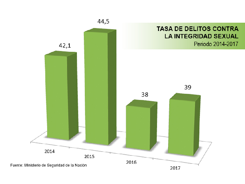 Además, se achicó en un 7,3% la cantidad de víctimas de delitos contra la integridad sexual en toda la provincia. La tasa por cada 100.000 habitantes pasó de 42,1 en 2014 a 39 en 2017.