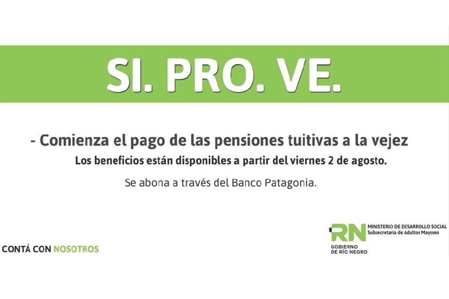 Desde hoy, jueves 12 de septiembre, se encuentra disponible el pago de las pensiones del Sistema Integral de Protección a la Vejez (SIPROVE) para los beneficiarios de la provincia de Río Negro.
