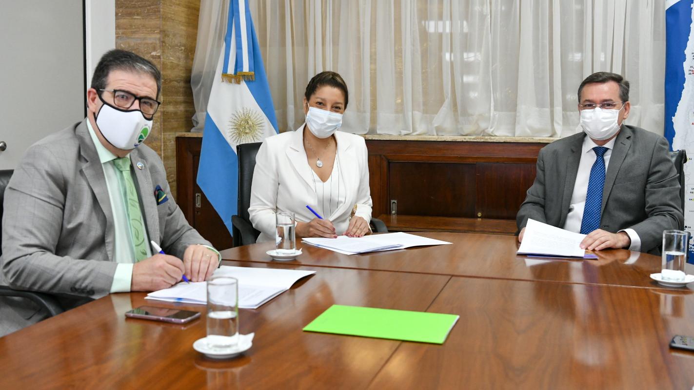 La Gobernadora, Arabela Carreras; el secretario de Minería de la Nación, Alberto Valentín Hensel y el intendente de San Antonio Oeste, Adrián Casadei, firmaron hoy el acuerdo que dispone la transferencia de los fondos para la remediación integral y definitiva de plomo en esa ciudad, producto de la actividad de la ex fundición Geotécnica.