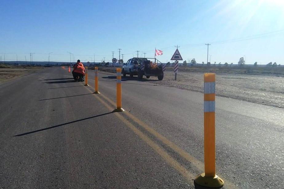 La Dirección de Vialidad Rionegrina se encuentra colocando divisores de calzada en la ruta provincial Nº 2, desde San Antonio Oeste en dirección al balneario Las Grutas.