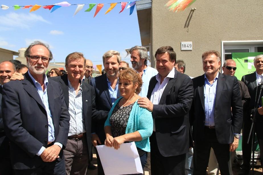 El gobernador, Alberto Weretilneck y el ministro del Interior, Obras Públicas y Vivienda de la Nación, Rogelio Frigerio, encabezaron hoy el acto de entrega de 73 nuevas viviendas en Cipolletti.