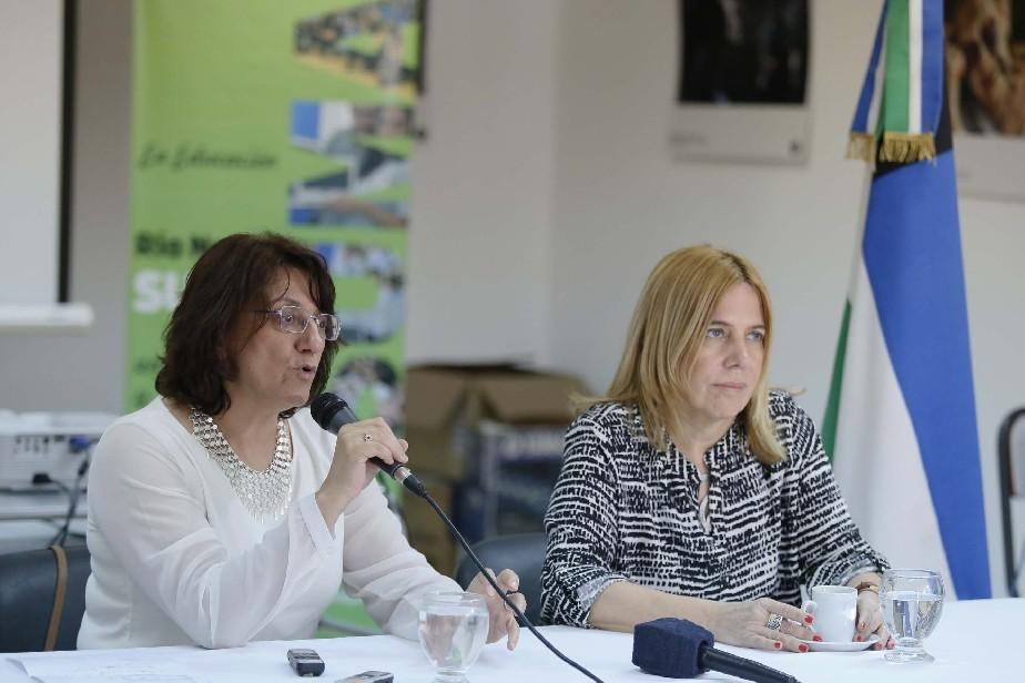 La ministra de Educación, Mónica Silva, junto a la secretaria de Evaluación Educativa del Ministerio de Educación y Deportes de la Nación, Elena Duro, ofrecieron detalles del dispositivo nacional de evaluación educativa anual "Aprender".