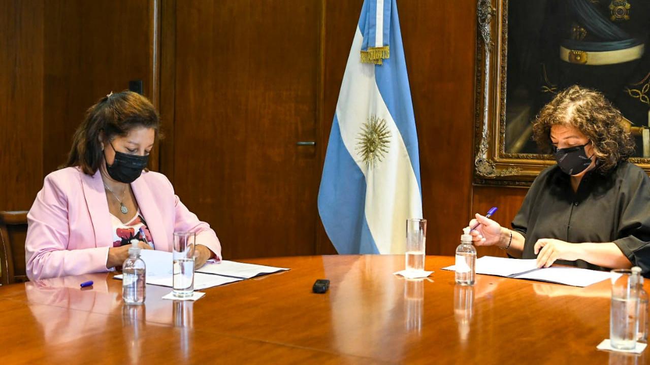 La Gobernadora Arabela Carreras firmó este jueves un convenio marco con la Ministra de Salud de la Nación, Carla Vizzotti, para que el laboratorio estatal rionegrino PROFARSE provea suplementos nutricionales, medicamentos y tecnologías sanitarias a diferentes programas que ejecuta Nación.
